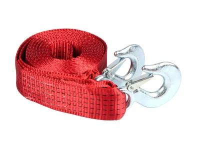 Vetolujuus 3000kg, murtolujuus 4500kg, leveys 50mm, pituus 5m. Jousilukitut koukut molemmissa päissä.